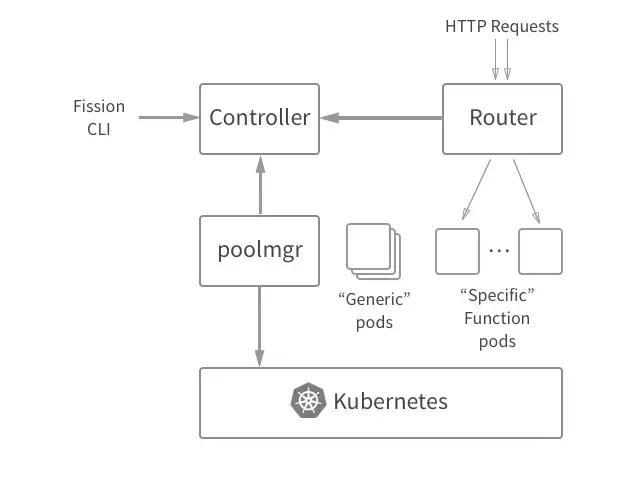 Fission简单说来,就是一个Web应用,Go语言编写,使用gorilla框架。不过它的模板引擎替换成了Kubernetes中的Service。使用k8s.io/client-go/kubernetes接口来操控(k8s就是Kubernetes)。