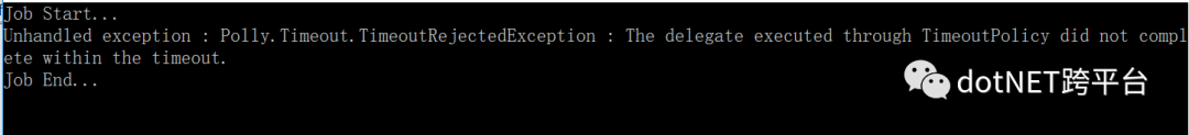 这里涉及到Polly中关于超时的两个策略:一个是悲观策略(Pessimistic),一个是乐观策略(Optimistic)。其中,悲观策略超时后会直接抛异常,而乐观策略则不会,而只是触发CancellationTokenSource.Cancel函数,需要等待委托自行终止操作。一般情况下,我们都会用悲观策略。
