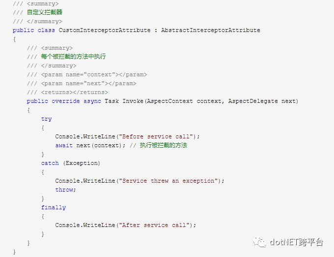 从上面的例子可以看出,如果直接使用Polly,那么就会造成我们的业务代码中混杂大量的业务无关的代码。所以,我们会使用AOP的方式来封装Polly,嗯,首先我们先找一个支持的.NET Core的AOP框架吧,目前大家都在用AspectCore(国产,作者Lemon),它采用动态动态代理/织入,并且支持异步方法的拦截。