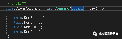 我们回到代码,会发现,在AddNumViewModel中,我们定义了一个继承自 ICommand的CleanCommand 的命令,并在构造函数中实现了它