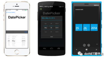 <DatePicker Format="yyyy-MM-dd" TextColor="Blue" x:Name="TimePic" MinimumDate="2015-05-30" />