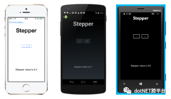 <Stepper Increment="10" Maximum="100" Minimum="0" Value="20" ValueChanged="Stepper_ValueChanged" />