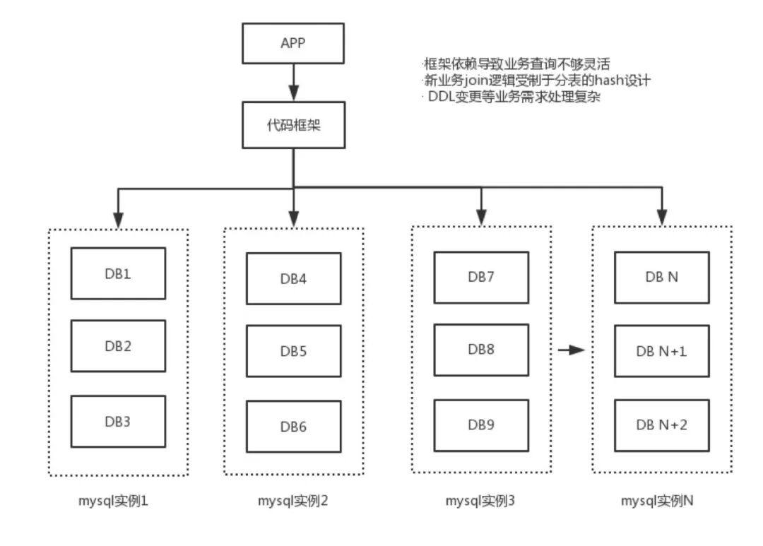 这时,非 HashKey 的查询、DDL 变更等业务需求、分表分库逻辑代码框架的局限让研发和运维都面临较高的数据库使用成本,数据库不能灵活高效的支撑业务需求。
