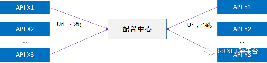 API X、Y...会通过Url访问配置中心,通过心跳(2s)来确认配置中心的健康以及检测配置内容的更新。