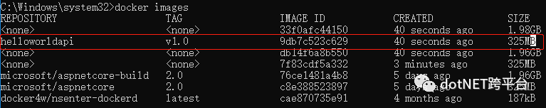 2、使用vs2017创建一个web api应用程序,并打包镜像到本地。