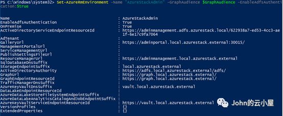 Set-AzureRmEnvironment -Name"AzureStackAdmin" -GraphAudience $GraphAudience-EnableAdfsAuthentication:$true