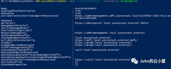 Add-AzureRMEnvironment -Name"AzureStackAdmin" -ArmEndpoint $ArmEndpoint