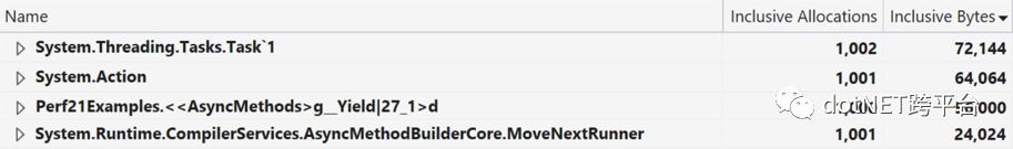 四个分配对象最终减少到一个,分配空间也缩减到了过去的一半。更多的实现信息可以参考 Avoid async method delegate allocation。