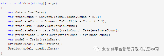 由于只有这一份数据,为了分别用于训练、评估和预测,我将数据集按7:2:1的比例进行分割。