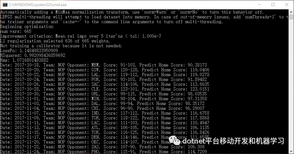 可以看到,最近的NBA比赛主队预测得分与真实结果对比,正确率已相当可观了,由于特征值都是比赛技术数据,用在以后的比赛时,可根据比赛进行的实时情况不断更新,便可越来越接近结果。
