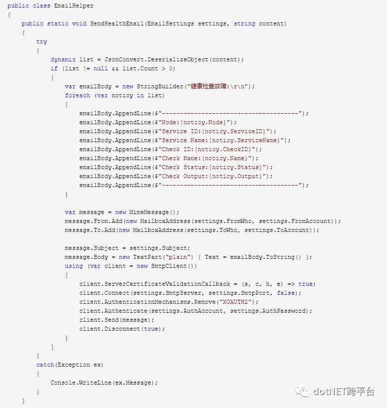 这里使用的是MailKit库(支持.net core),可以通过NuGet搜索并安装,此外为何接受的参数属性是这些,大家可以看看Consul官方文档中watches页中的checks类型,见下图所示: