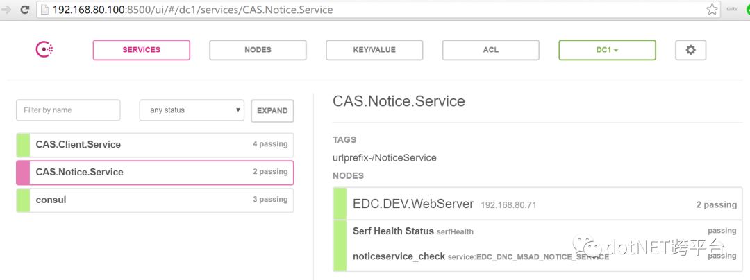 发布完成之后,重启Consul Client节点(192.168.80.71)的Consul服务,可以看到NoticeService也注册成功: